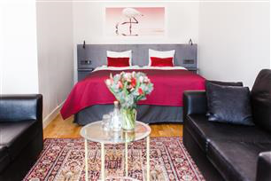 Samtliga rum har parkettgolv med heltäckningsmatta i hallen och är självklart rökfria. Vi välkomnar även husdjur i våra djurvänliga dubbelrum mot en extra avgift. På samtliga våningar finns strykjärn och strykbräda att tillgå i korridoren.